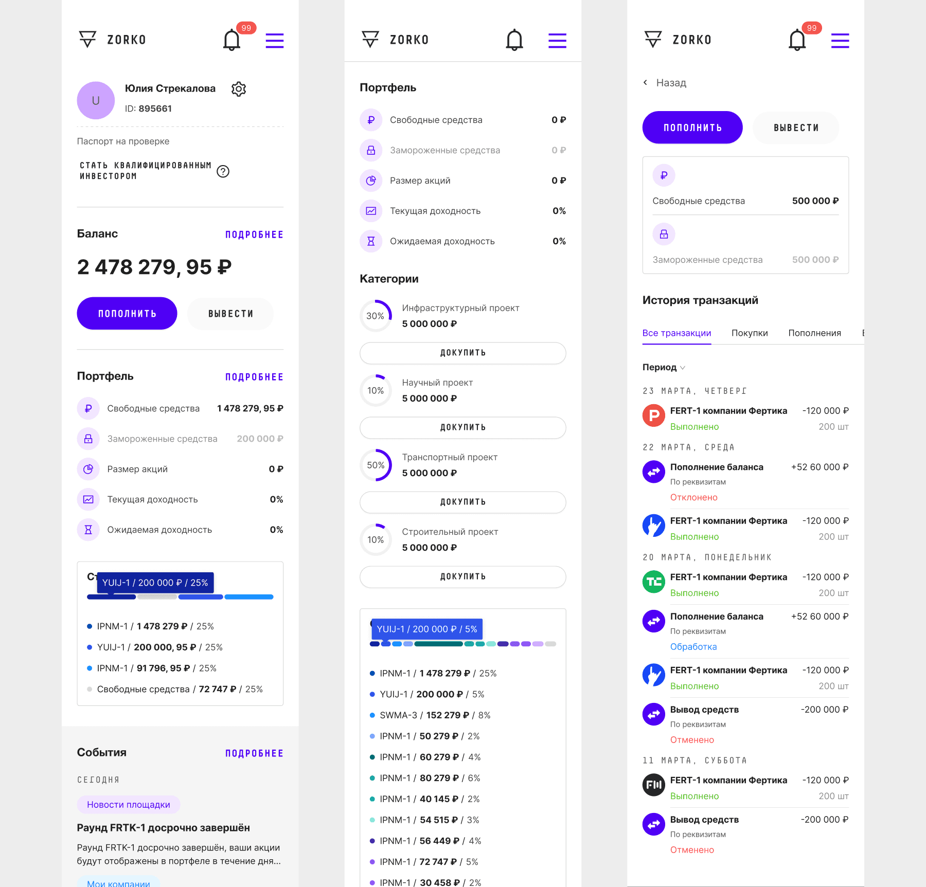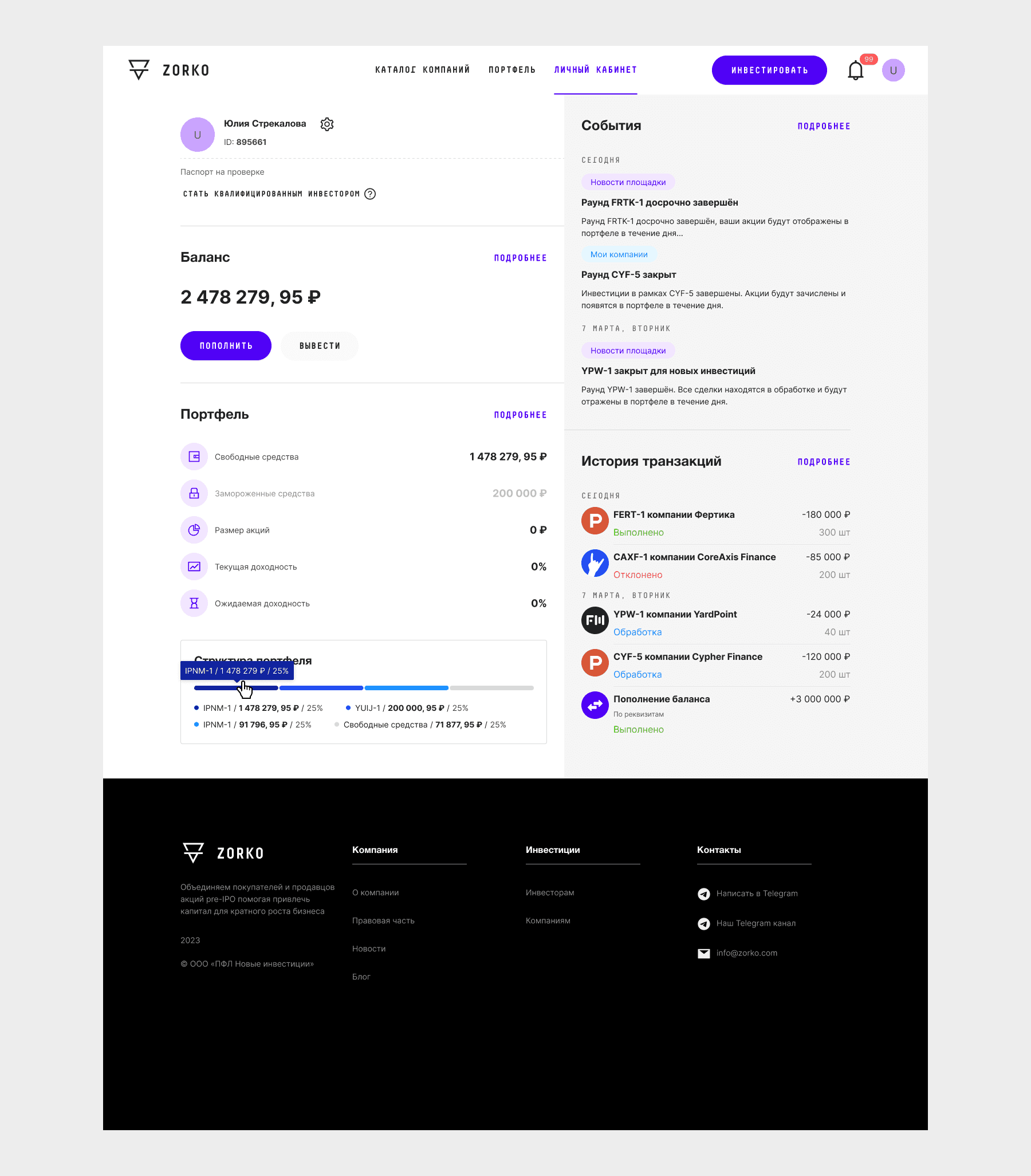 A pre-IPO investment platform connecting private investors with non-public companies. I designed the investor and issuer dashboards, as well as the corporate website, creating a scalable, high-load interface and visual identity from scratch.